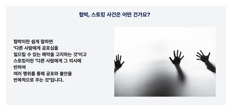 실제로 호기롭게 증거와 함께 스토킹 고소를 진행했으나, 무혐의 처분이 나와 저희에게 사건을 의뢰해 주시는 분들도 계시는데요.