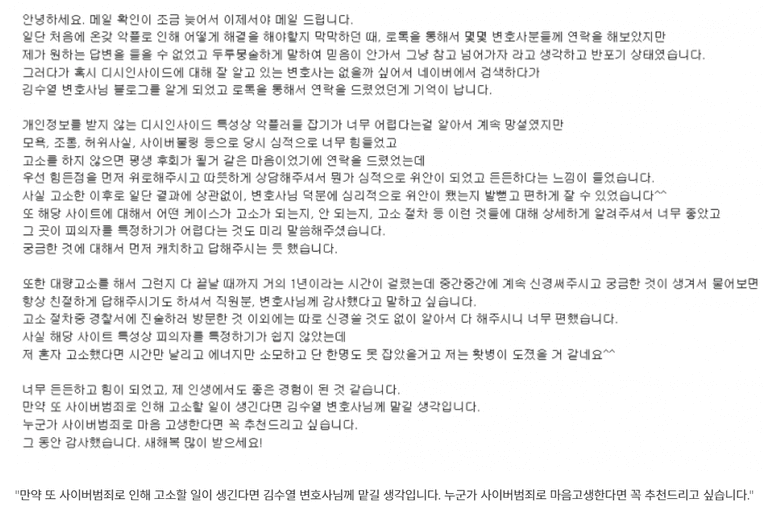 악플고소 어느 의뢰인분의 감사메일