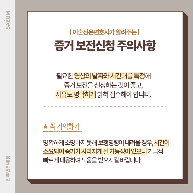 이에 법무법인 새움에서는 의뢰인 A씨의 요청을 받아 모텔 CCTV 영상을 확보하기 위해 증거보전신청을 하게 되었습니다. 다만 증거보전의 경우 법원의 결정이 있어야 하며, 가능한 한 빠르게 결정을 받을 수 있어야 중요한 증거가 훼손되는 일 없이 확보하여 법원에 제출하는 것이 가능하기에 신속하게 결정이 내려오도록 진행하는 것이 급선무였습니다.