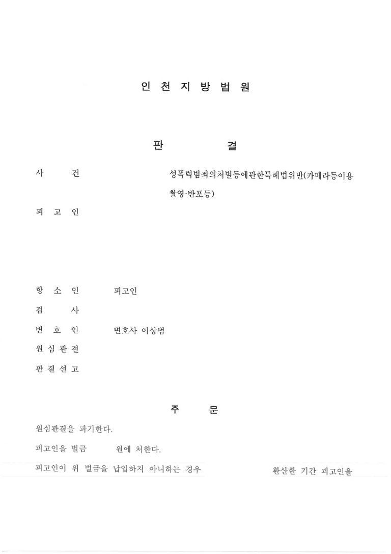 - 의뢰인은 카메라등이용촬영죄로 1심에서 집행유예를 선고 받게 되었고, 항소심에서 감형을 받고자 법무법인과 상담을 진행한 후, 조력을 받기로 결정하였습니다.