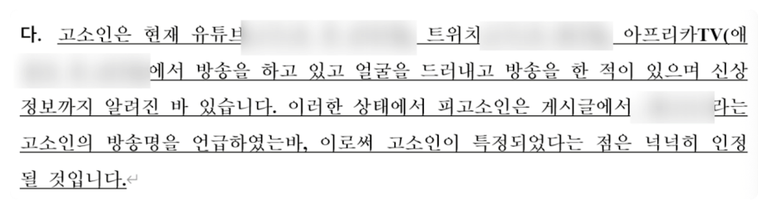 신상정보를 일부 공개하거나 얼굴을 드러낸 적이 있다면 특정성을 충분히 성립될 여지가 존재합니다.