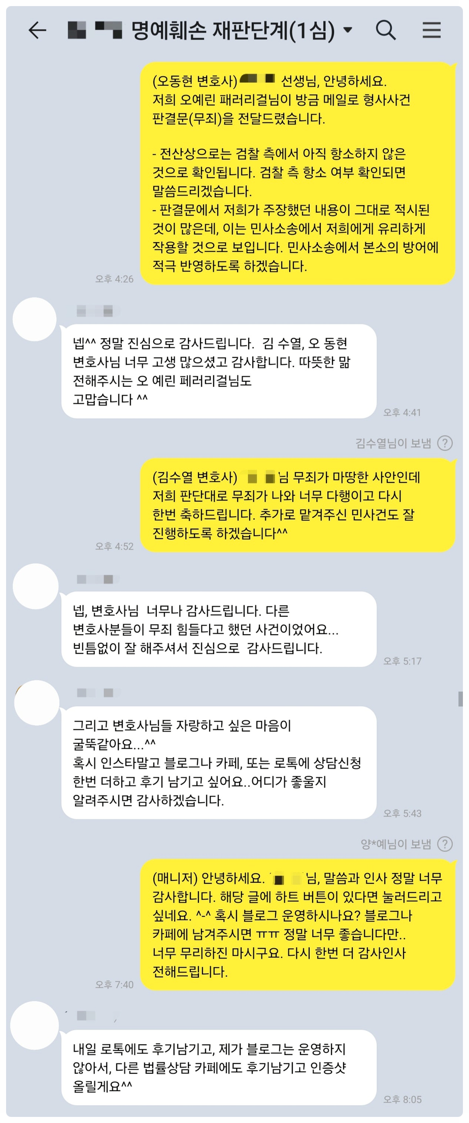 저희를 찾아주신 의뢰인분들의 감사 카톡 후기입니다.