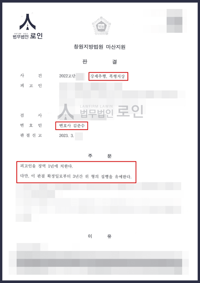 이 일로 의뢰인은 강제추행 및 폭행치상 혐의로 구속될 위기에 처해 부산형사전문변호사에게 도움을 요청하셨다고 합니다.