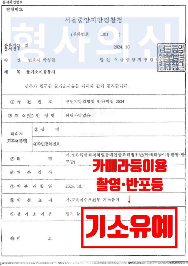 수원지방검찰청 안양지청 검사는 법률사무소 유(唯)의 형사전문변호사의 주장 및 제출한 양형사유를 받아들여 의뢰인이 촬영하려 하였으나 범행이 미수에 그치고 피해자와 원만히 합의하여 피해자가 의뢰인에 대한 처벌불원의사를 표시한 점, 의뢰인이 본건 범행을 일체 시인하고 반성하며 보호관찰소에서 진행하는 성범죄 재범방지 교육을 성실히 이수할 것을 서약한 점을 참착하여‘교육이수조건부 기소유예’를 선고하였습니다.
