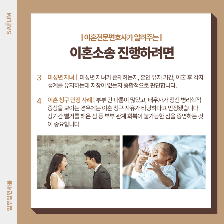 이와 함께 추가로 주의 깊게 살펴보는 부분은 자녀입니다. 미성년자 자녀가 존재하는지, 혼인의 기간이 어느 정도인지, 절혼 이후 각자가 생계를 유지하는 데 있어 지장이 없는지, 결혼생활을 이어갈 의사가 양측 모두 없는지 등을 종합적으로 고려하여 판단합니다.