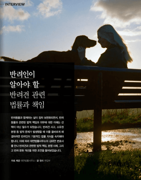 동물전문변호사로 유명하신 김태연 대표변호사님의 월간지 인터뷰
