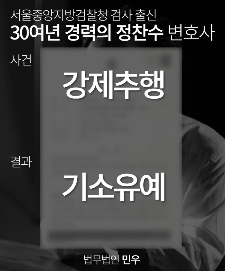 그 결과 검찰에서는 본 변호인의 주장을 모두 받아들였고, 당시 의뢰인이 연루된 강제추행 혐의에 대해 ‘기소유예’로 선처해주었으며, 다행히도 의뢰인께서는 일상으로 돌아갈 수 있게 되었습니다.