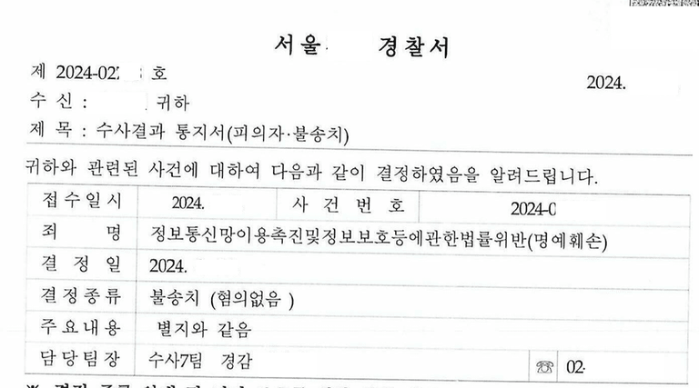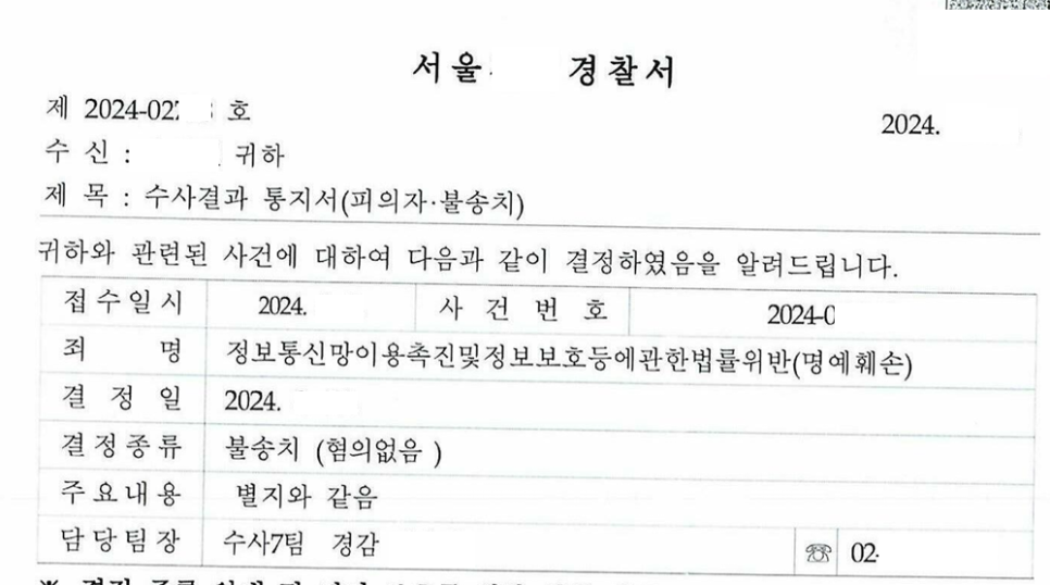 저희가 빈틈없이 준비하고 방어한 결과, 저희가 자신있게 말씀드린 것처럼 불송치 결정(무혐의)가 나왔습니다! 검찰 단계까지 가지 않고, 경찰 단계에서 바로 무혐의로 사건이 종결된 것입니다.