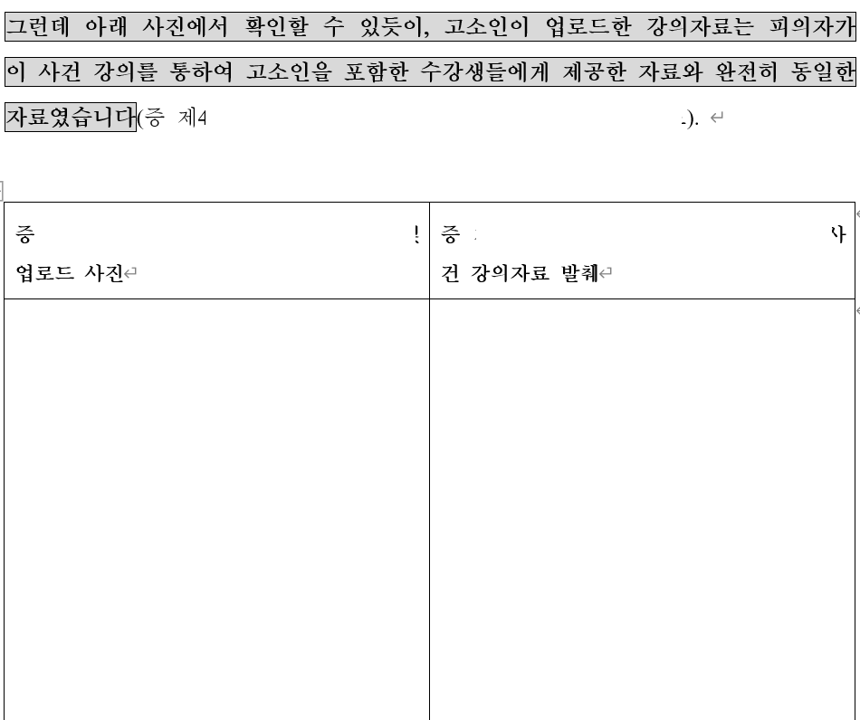 특히 허위사실 여부가 문제 된 고소인의 강의 도용 여부에 대하여는, 원본 강의와 고소인의 강의를 표 형식으로 제시하며 비교분석하며, 사실상 동일한 강의이므로 허위사실이 아니라는 점을 적극적으로 밝혀냈습니다.