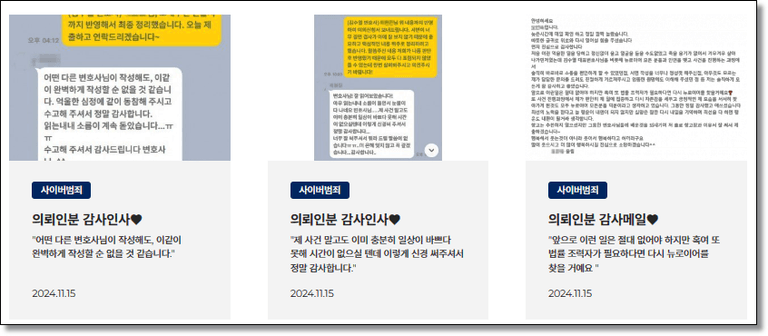 그중 일부는 자신의 SNS에 허위 사실을 유포하며 팔로워들과 함께 의뢰인분을 조롱하고 모욕하는 일까지 벌어졌습니다.