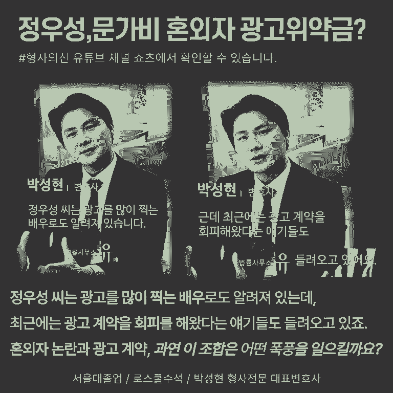 ![[형사의신 카드뉴스] 정우성,문가비 혼외자 논란, 광고위약금은?](/_next/image?url=https%3A%2F%2Fd2ai3ajp99ywjy.cloudfront.net%2Fuploads%2Ftitleimage%2Foriginal%2F5c4a6eb2b834cb679811aff1-original.jpg&w=3840&q=75)