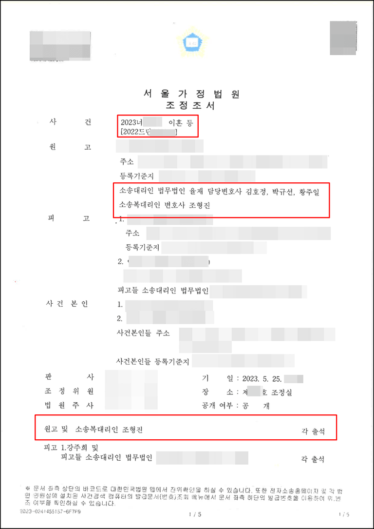 저희 율재는 대한변호사협회 공식 인증 이혼 전문 법무법인으로서 의뢰인의 사건을 수임하여 의뢰인께서 원하는 결과를 얻기 위해 최선을 다하였습니다.