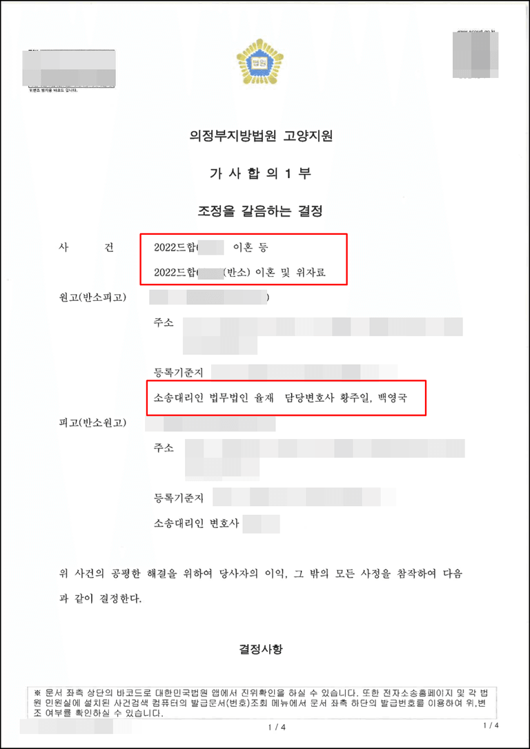 이혼 사건을 수임하고 소송을 치르다 보면 매우 많은 시간과 정력이 필연적으로 소모됩니다. 따라서 많은 분들이 이혼 방법 중 협의이혼을 제외하고 조정제도 및 조정을 갈음하는 결정을 많이 활용하고 있습니다.