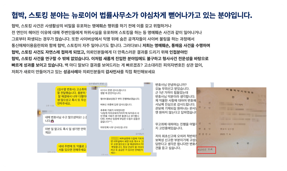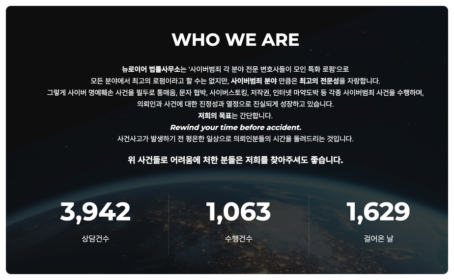 안녕하십니까? 사이버 범죄 특화 로펌 뉴로이어입니다.