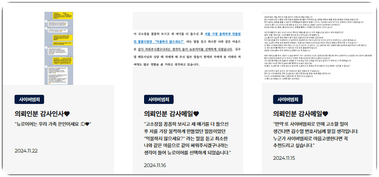 뉴로이어 의뢰인분들 감사 인사 및 후기. - 홈페이지에 더 많은 후기들이 있어요 :)