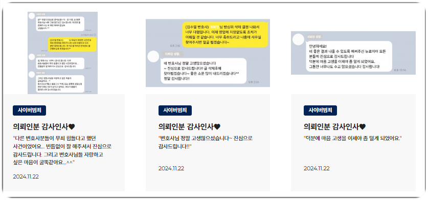 저희는 앞으로도 언제나 의뢰인의 입장에서 최선을 다하는 변호사가 되겠습니다. 법적 지원뿐만 아니라, 의뢰인이 겪는 감정적 고통을 이해하고 그를 지지하는 역할에도 최선을 다할 것입니다. 의뢰인이 다시 한 번 자신의 삶을 주체적으로 살아갈 수 있도록, 그리고 다시는 비슷한 고통을 겪지 않도록 함께 힘쓰겠습니다.