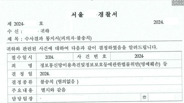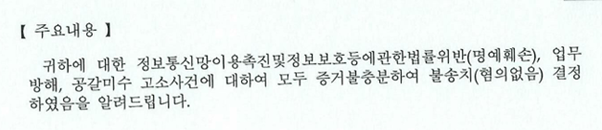 3. 최종 결과 - 강남 대형 성형외과 후기 명예훼손, 업무방해, 공갈미수 무혐의