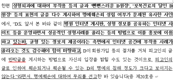 그런데 성형외과에서 수술을 받은 후 부작용이 발생한 경우 이를 널리 알리려고 글을 썼다가, 도리어 성형외과로부터 고소를 당하는 사안이 정말 많습니다. 저희 사무실에서 같은 종류의 사건 문의가 끊임없이 들어오고 있는 상황입니다.