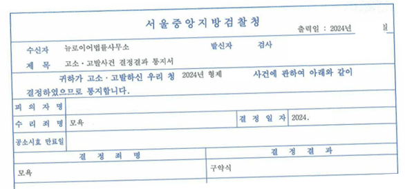 저희가 세심하게 작업하고 만반의 준비를 다한 결과, 저희는 의뢰인 분에게 상대방(유명 방송인)이 벌금형으로 기소(구약식)되었다는 좋은 소식을 전달드릴 수 있었습니다!