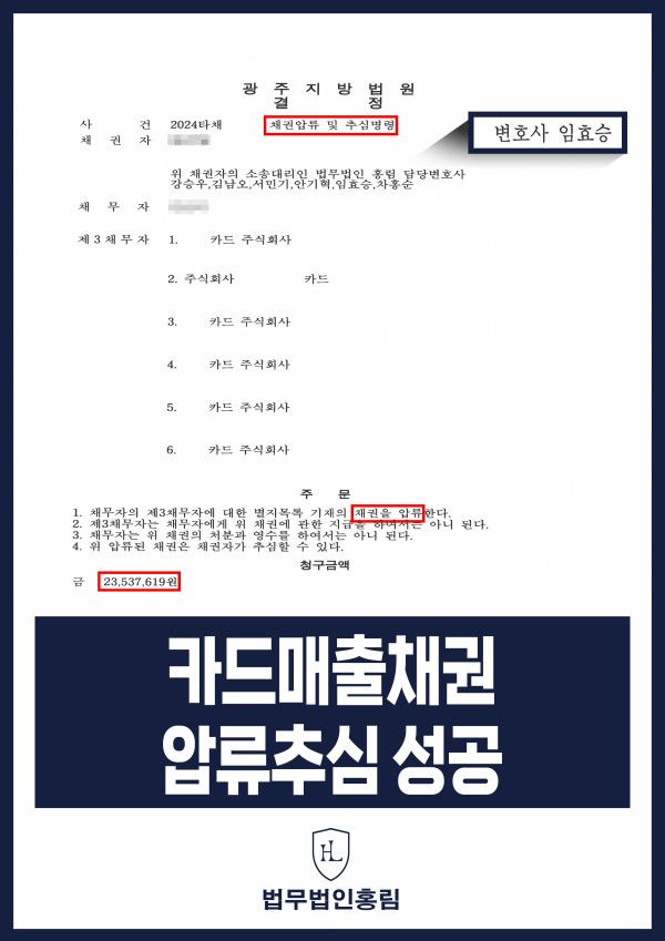 이에 본 법무법인은 의뢰인 A씨와 사건을 검토한 결과 의뢰인 A씨가 채권압류 및 추심명령을 통해 돈을 받을 이유가 상당하다고 판단하였고, 판결문과 관련 증거 자료를 기반으로 카드매출 채권압류 및 추심명령 소를 제기하여 카드 매출 채권압류 및 추심을 할 수 있도록 조력하였습니다.