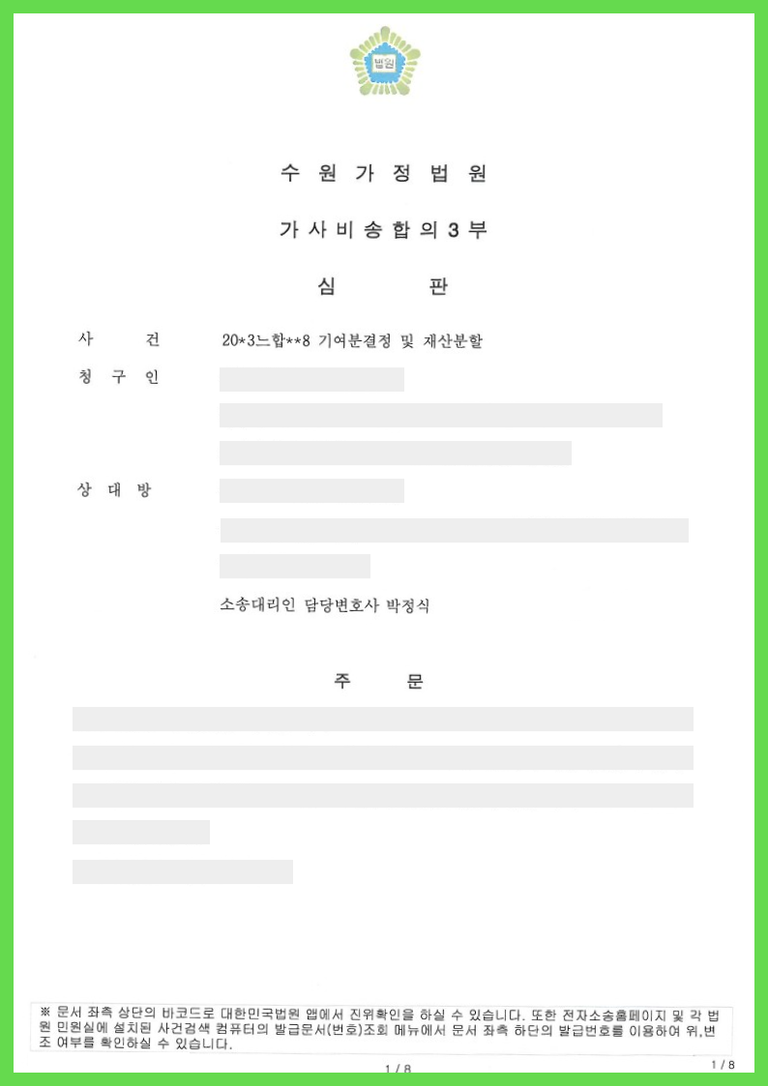 ② 재판부는 청구인의 기여분결정 청구를 기각하고, 청구인이 상대방의 특별수익으로 주장한 금원도 특별수익이 아닌 것으로 보아 피상속인이 남긴 상속재산은 법정상속분대로 청구인과 상대방이 1/2씩 공유 또는 준공유하는 것으로 분할한다는 심판 결정이 난 사건입니다.