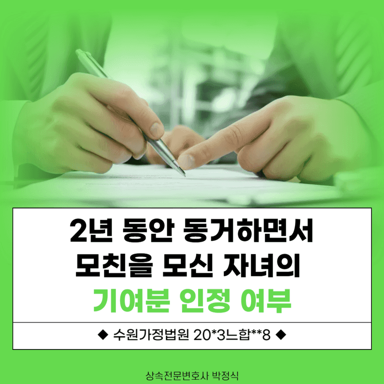 부친 사망후 모친의 건강이 악화되어 2년 정도 딸이 모친의 집에서 같이 생활하고 얼마 지나지 않아 모친이 사망한 사안에서 모친을 모셨다는 이유로 딸이 기여분결정 및 상속재산분할심판 청구를 한 사안입니다.