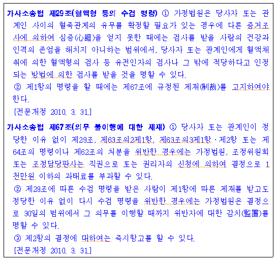 친자임을 인정하지 않는 부가 자발적으로 유전자검사에 응하지 않을 수 있어 법원을 통해 유전자검사명령을 내려달라고 요청할 수 있습니다. 이를 수검명령신청이라고 합니다.