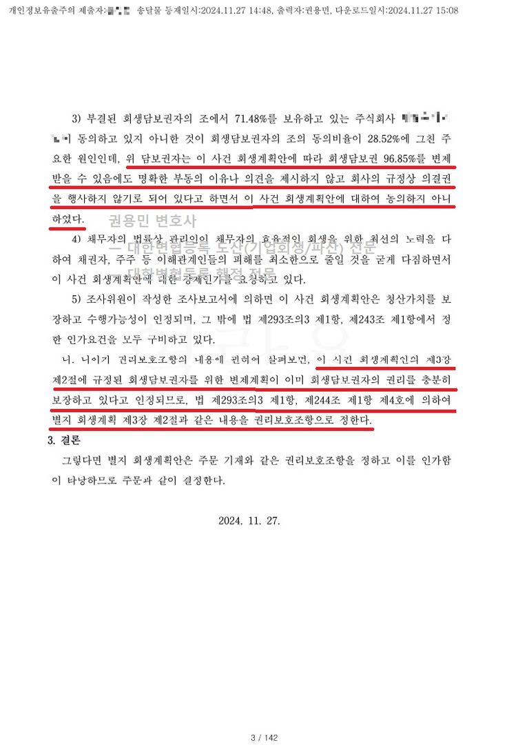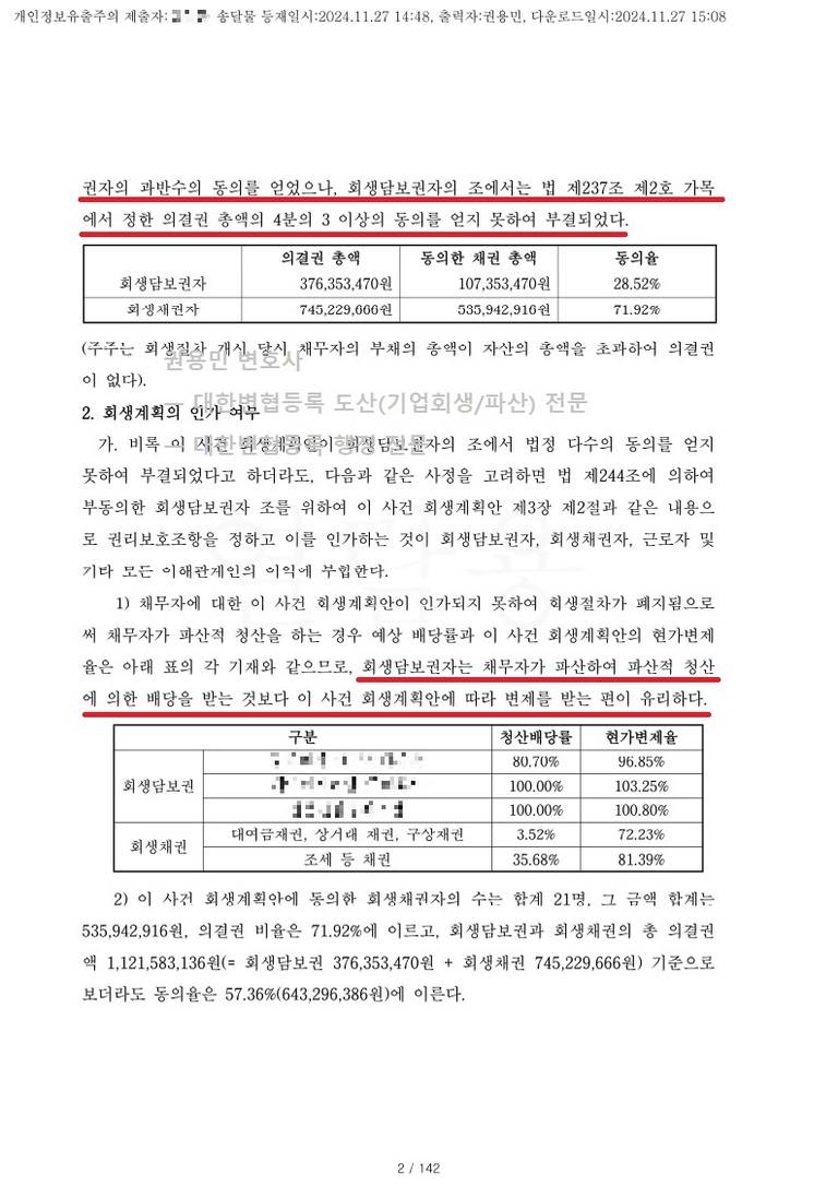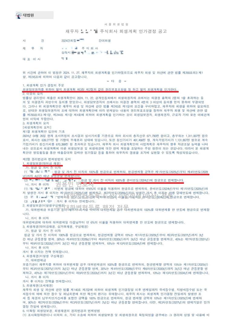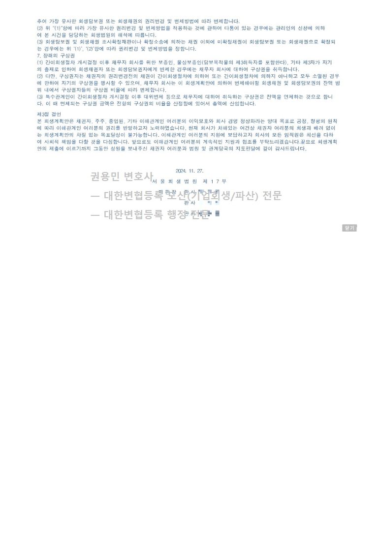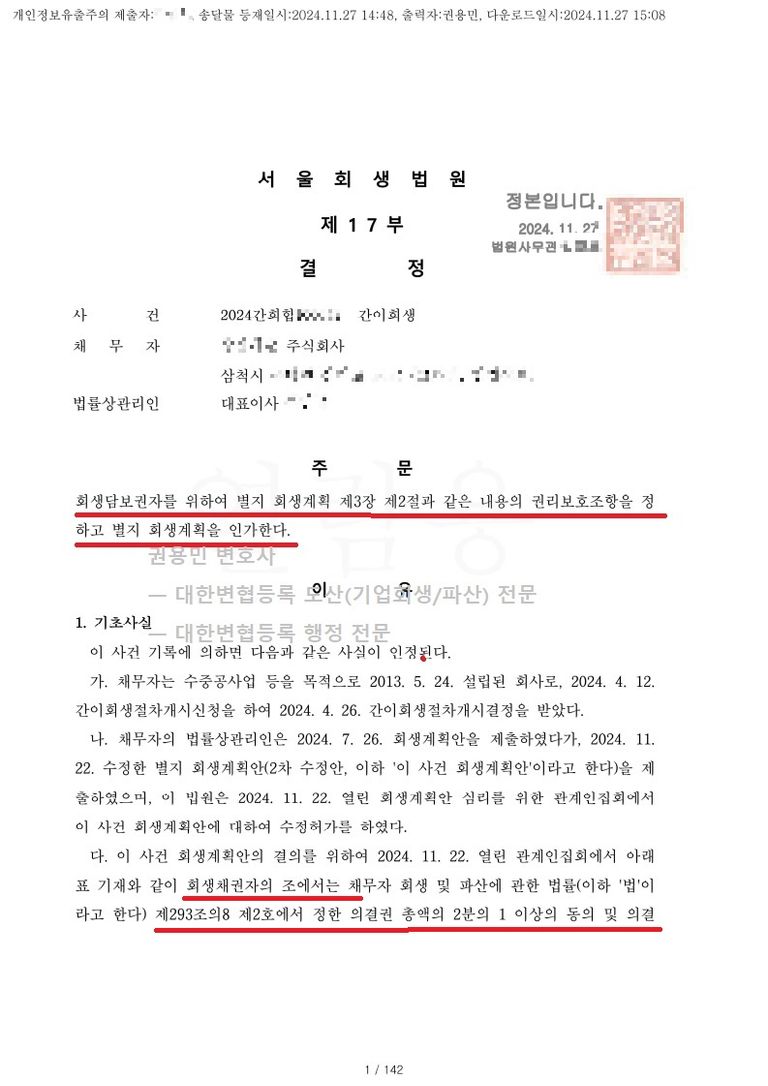 2024. 11. 27. 법인회생 강제인가 - 서울회생법원