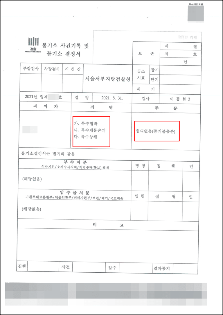 검찰 단계 '혐의없음'으로 방어하였습니다.