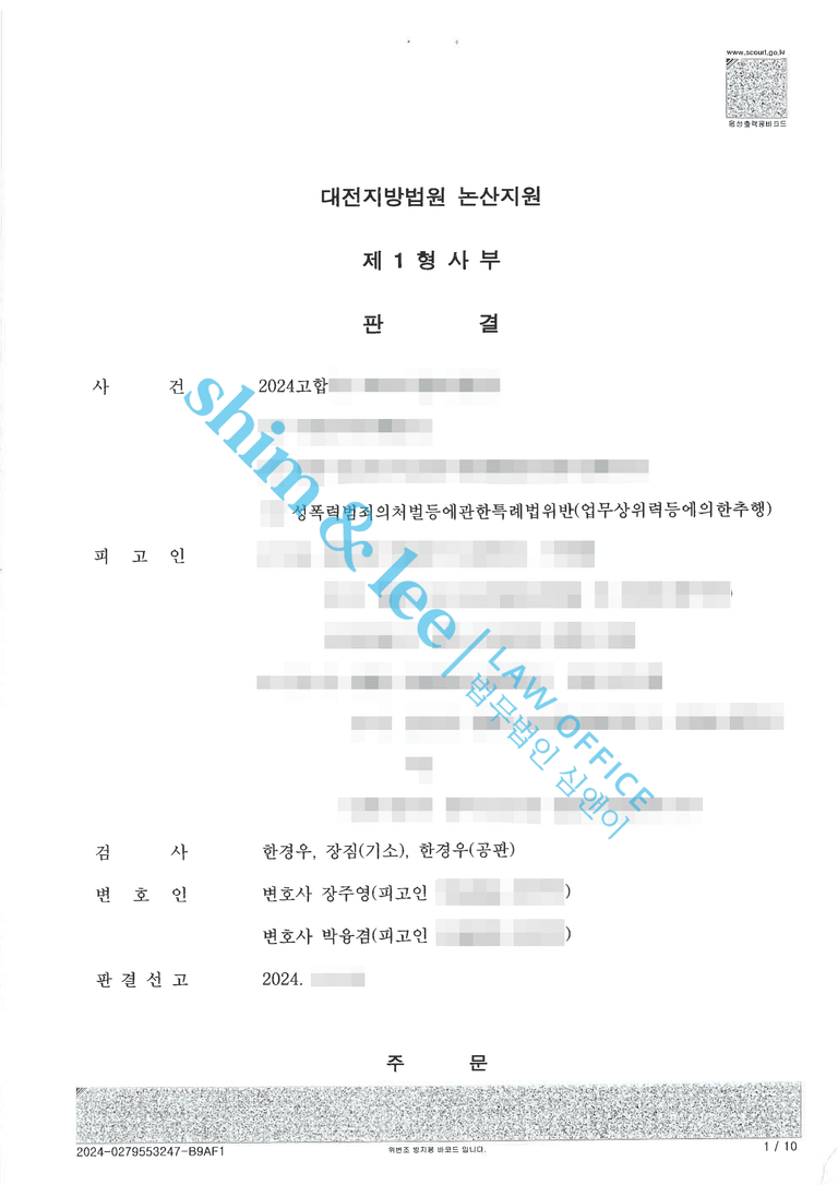 - 특히, 선고기일에 재판부는 “가해자가 1,000만 원을 공탁하였으나 피해자가 공탁금 수령을 거절하며 피고인의 엄벌을 탄원하고 있고, 피해자는 해당사건으로 인해 심각한 정신적 충격을 받았을 뿐만 아니라 결국 퇴사까지 하여 그 피해가 가볍지 않다” 라고 언급하며 공탁이 감형사유가 될 수 없음을 밝혀주었습니다.