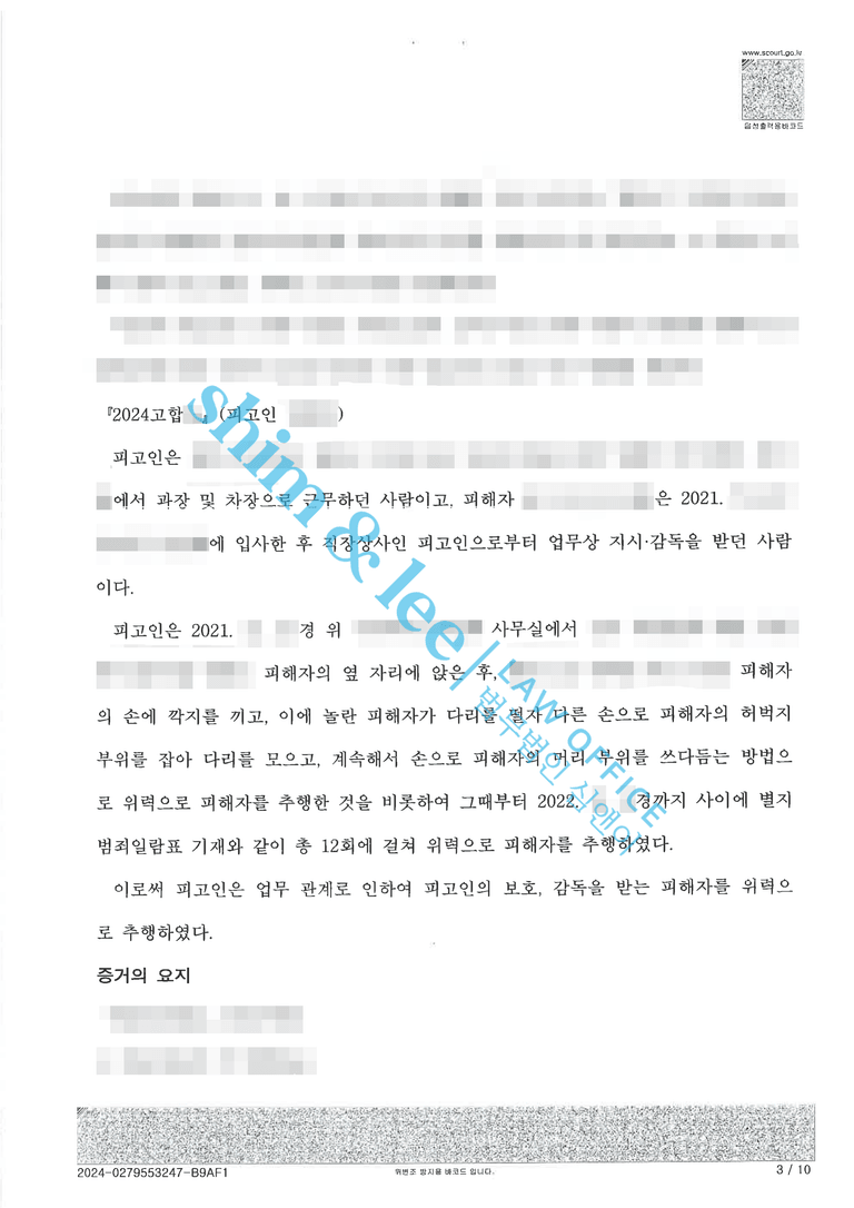 - 의뢰인은 신입사원, 가해자는 차장으로서 의뢰인에게 업무를 교육하고 근무를 감독하는 지위에 있었습니다.