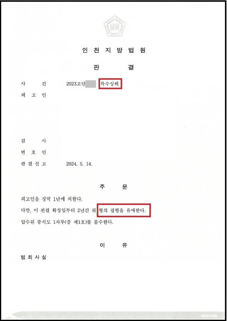 재판부는 캡틴법률사무소에서 제출한 양형자료의 취지를 받아들여 다수의 폭력전과에도 불구하고 집행유예를 선고하여 의뢰인은 계속 일상을 이어갈 수 있게 되었습니다.