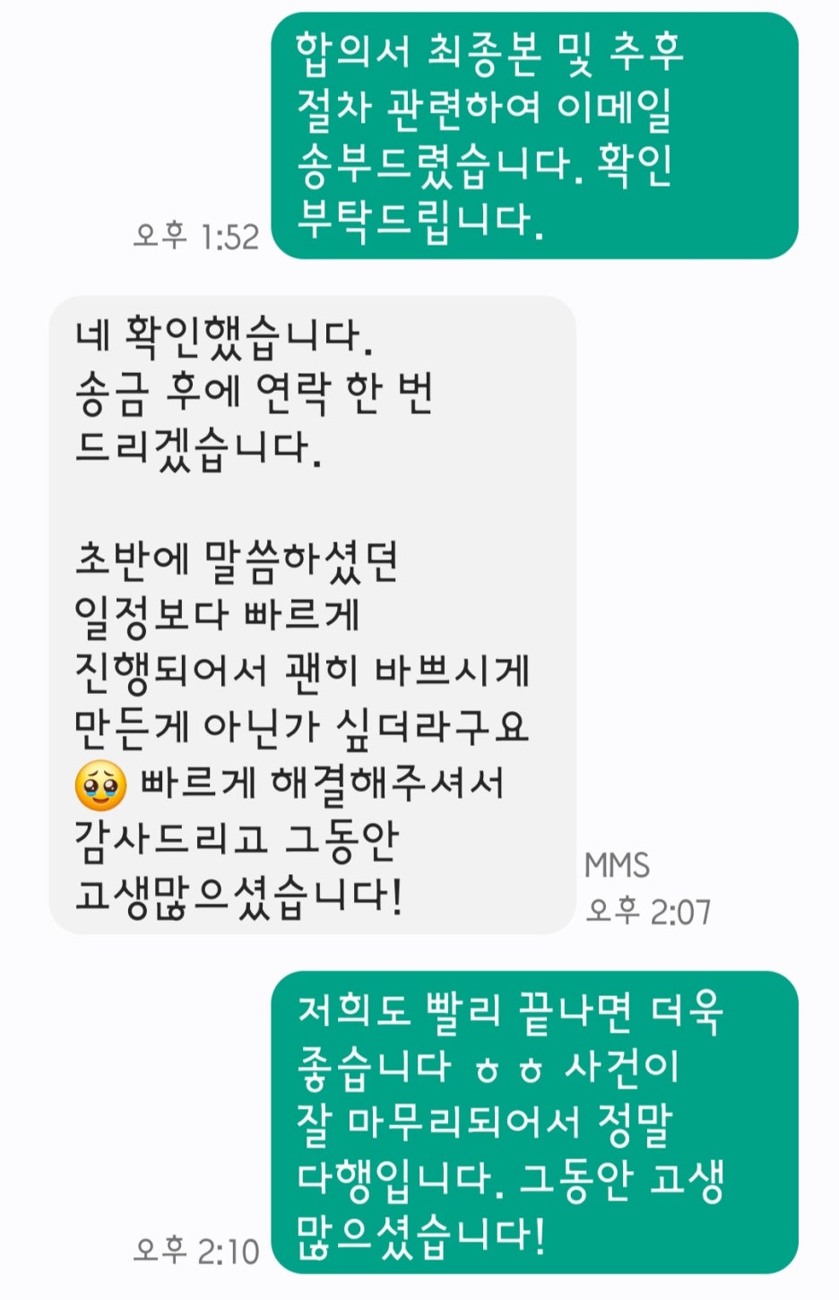 이에 의뢰인에게 조금이라도 더 이득이 되는 방향으로 도움을 드리고자 소송을 제기하기 전에 법무법인 명의의 내용증명을 먼저 보내고 합의를 진행하였습니다.
