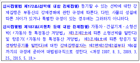 선박, 자동차, 건설기계, 항공기는 부동산에 준해서 강제집행을 진행합니다.