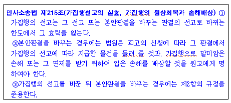 가집행은 잠정적인 만족만 주는 것으로 판결이 2심 등에서 뒤집힐 경우 그에 따라 효력을 잃게 되는 강제집행절차입니다.