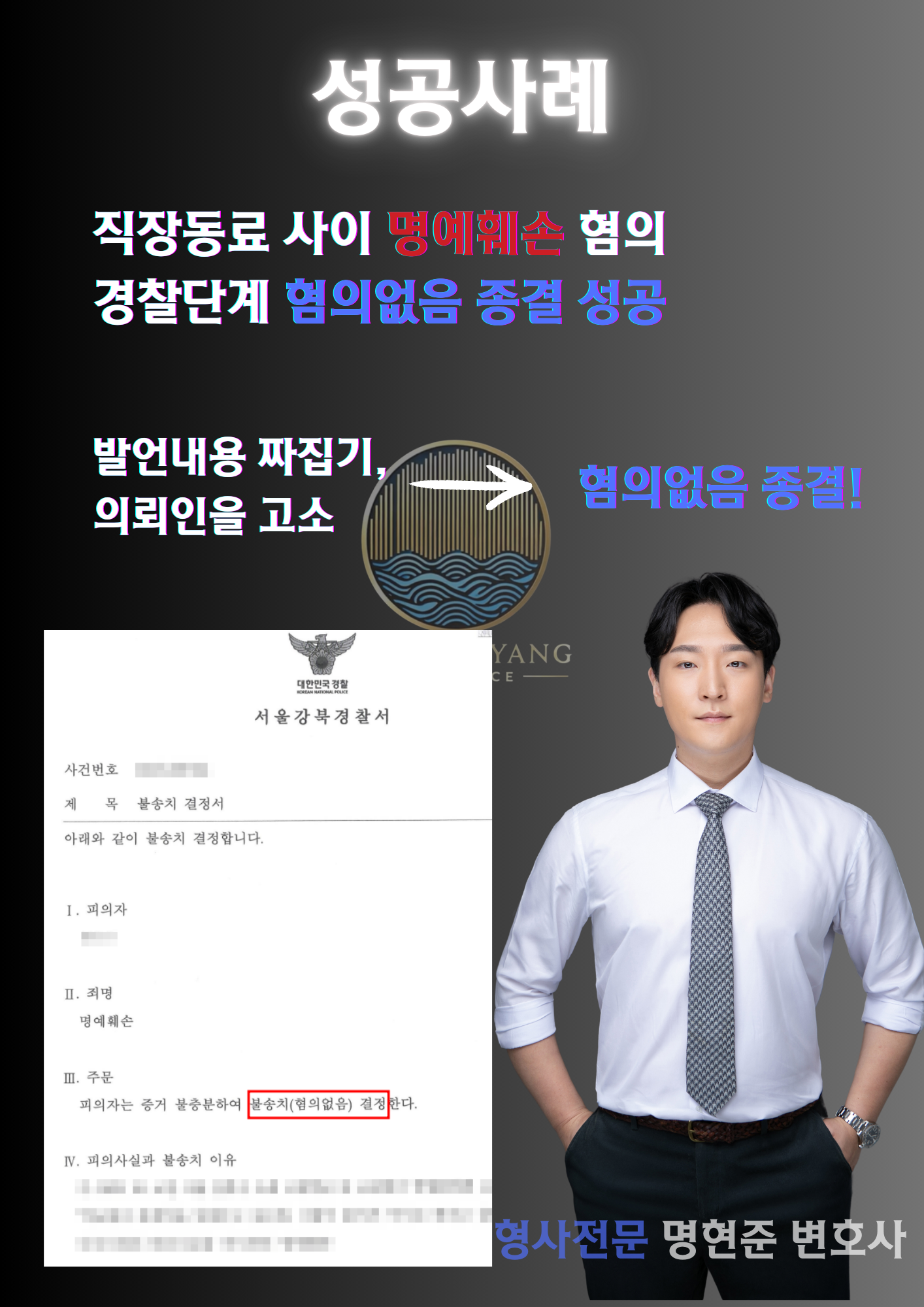 경찰에서는 본 변호인의 주장을 받아들여 경찰단계에서 불송치(혐의없음)으로 사건을 종결했습니다.
