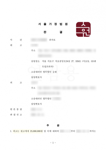 다행히 의뢰인은 청구한 위자료 대부분을 인정받고 소송 비용을 피고가 부담하라는 판결까지 확보할 수 있었습니다.