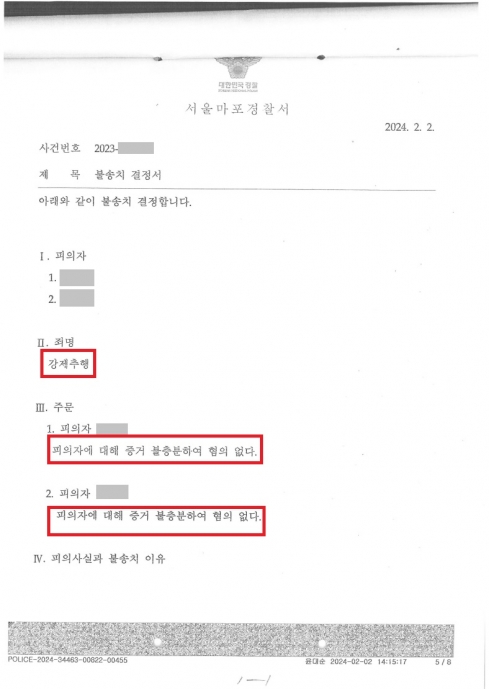 결국, 담당수사관은 캡틴법률사무소가 주장한 위와 같은 근거를 이유로 하여, 각 의뢰인들에게 혐의없음 불송치 결정을 하였습니다.