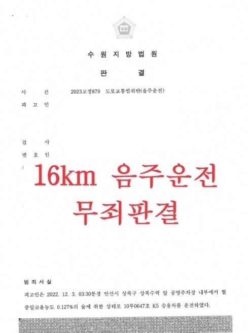 피고인이 주차장에서 운전한 것은 사실이기에 이는 자백하고, 반성하는 취지로 재판에 임하였습니다. 그러나 주차장에서 터널까지는 피고인이 운전한 것이 결코 아니었기에 반드시 무죄판결이 나와야 했습니다.