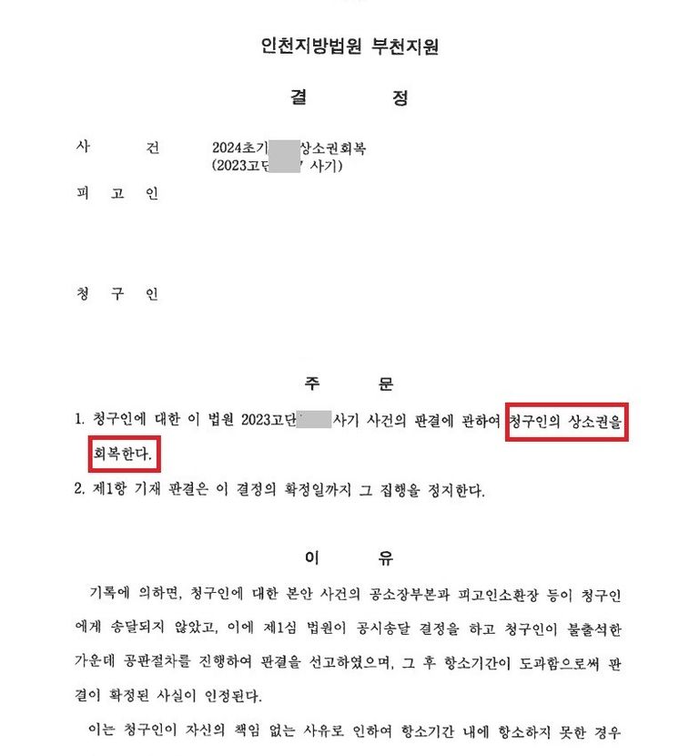 결국, 상소권이 회복되어 의뢰인은 항소심을 통해 원심에서 주장해보지 못한 양형사유 등을 주장할 수 있는 기회를 얻게 되었습니다.
