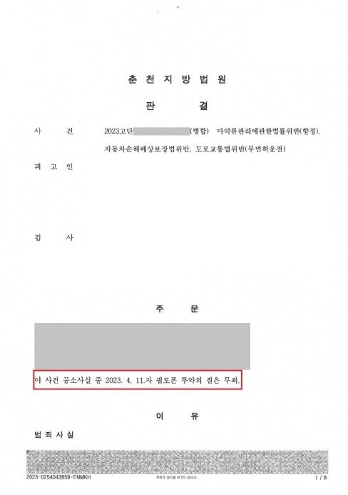 재판부는 의뢰인의 투약혐의 입증에 관한 캡틴법률사무소의 주장을 받아들여 의뢰인의 위 공소사실 기재 일시 필로폰 투약 혐의에 대하여 무죄를 선고하였습니다.