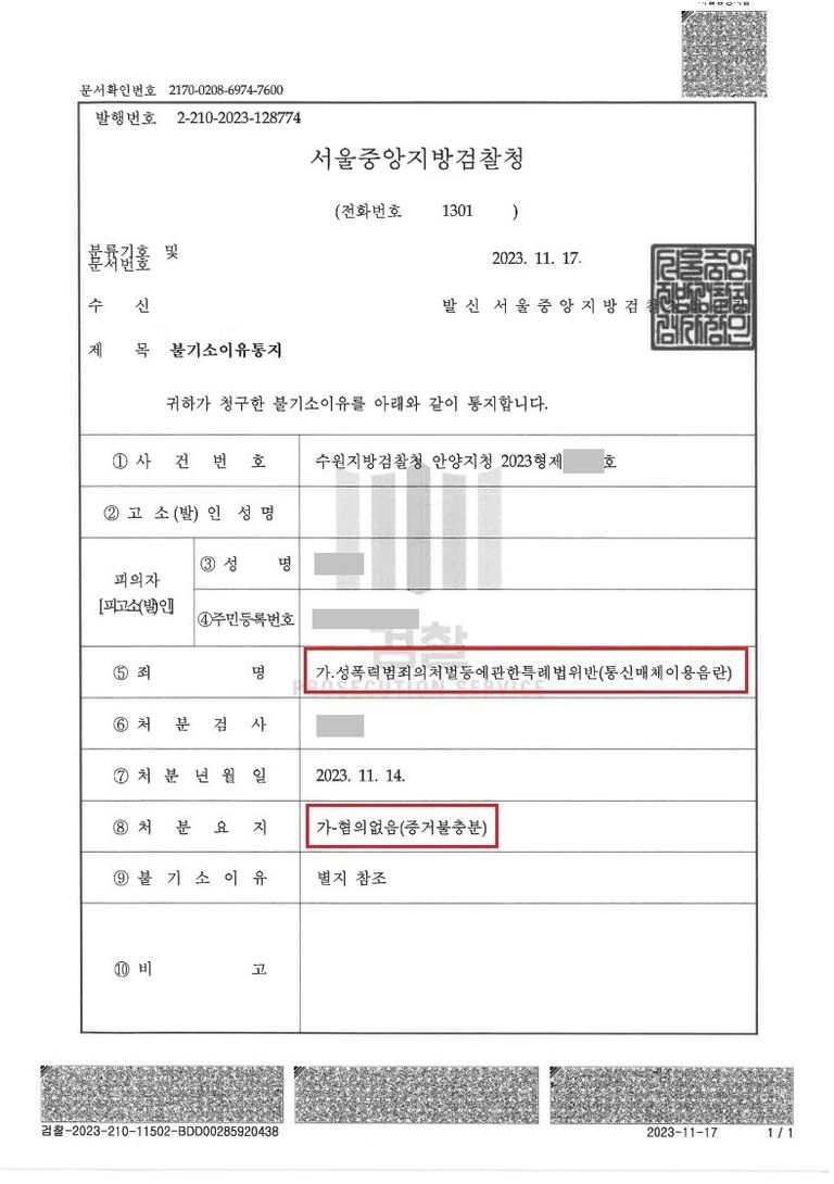 경찰의 불송치 결정에 대하여 피해자가 이의신청을 하여 사건이 검찰로 넘어갔으나, 검찰 단계에서 거듭 변호인의견서를 제출하고 주임 검사 면담 등을 통해 의뢰인을 변론한 결과, 혐의없음 불기소 결정이 내려졌습니다.