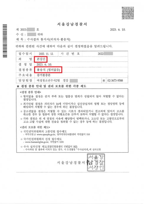 이 사건 담당수사관은 캡틴법률사무소의 주장대로 해당 여성의 진술에 모순점이 있음을 인정하여 의뢰인에 대하여 혐의없음 불송치 결정을 함으로써 의뢰인은 억울한 형사처벌도 피하고, 직장도 지켜내는 등 일상으로 돌아갈 수 있게 되었습니다.
