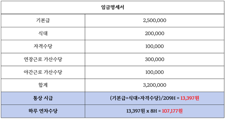 " 하루 연차수당 = 통상 시급 x 8시간 "