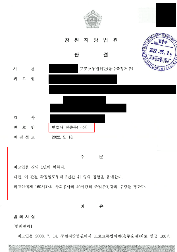 피고인의 양형자료를 적극적으로 제출하여 집행유예 판결을 받은 사례입니다.