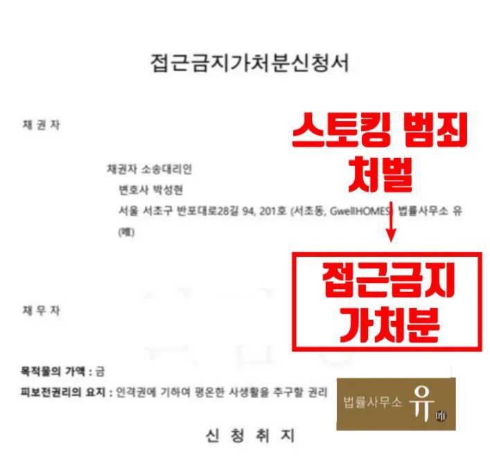 법률사무소 유(唯)의 스토킹범죄전문변호사는 의뢰인과의 신속한 상담을 통해 사건의 경위 등을 정확하게 파악한 후 피해자인 의뢰인이 가해자로부터 당하고 있는 피해사실들을 구체적으로 적시하여 가해자가 더 이상 스토킹 행위 등을 하지 못하도록 접근금지가처분을 신청하는 한편 가해자를 수사기관에 고소하였습니다.