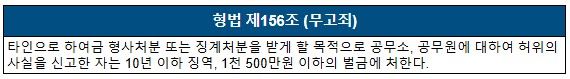 > 피해 사실을 거짓으로 신고 혹은 고소해 타인을 형사 처벌을 받게 하는 것을 말합니다.