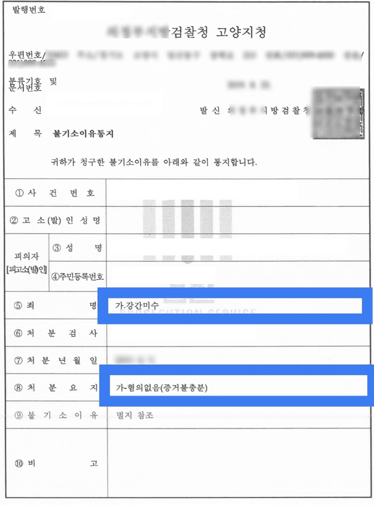결국 위와 같은 조력을 바탕으로, A씨는 검사로부터 '혐의 없음'(무혐의) 처분을 받았습니다.