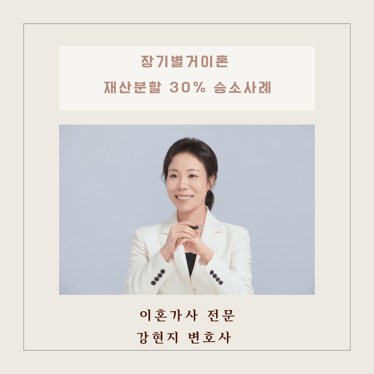 남편분이 별거기간 중 형성한 퇴직금 등이 모두 포함되어 재산분할 30%가 인정된 성공사례입니다.