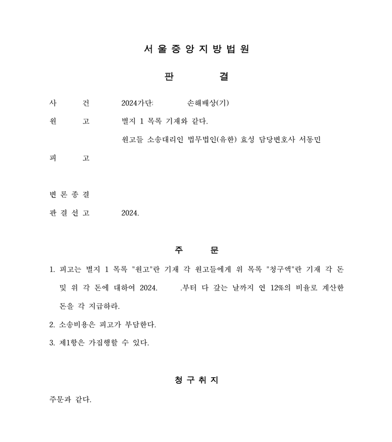 저는 즉각 피고의 사기 불법행위에 기한 손해배상청구소송을 제기하였고 법원은 원고들 승소 판결을 선고하여 의뢰인들은 피해액을 배상받았습니다.